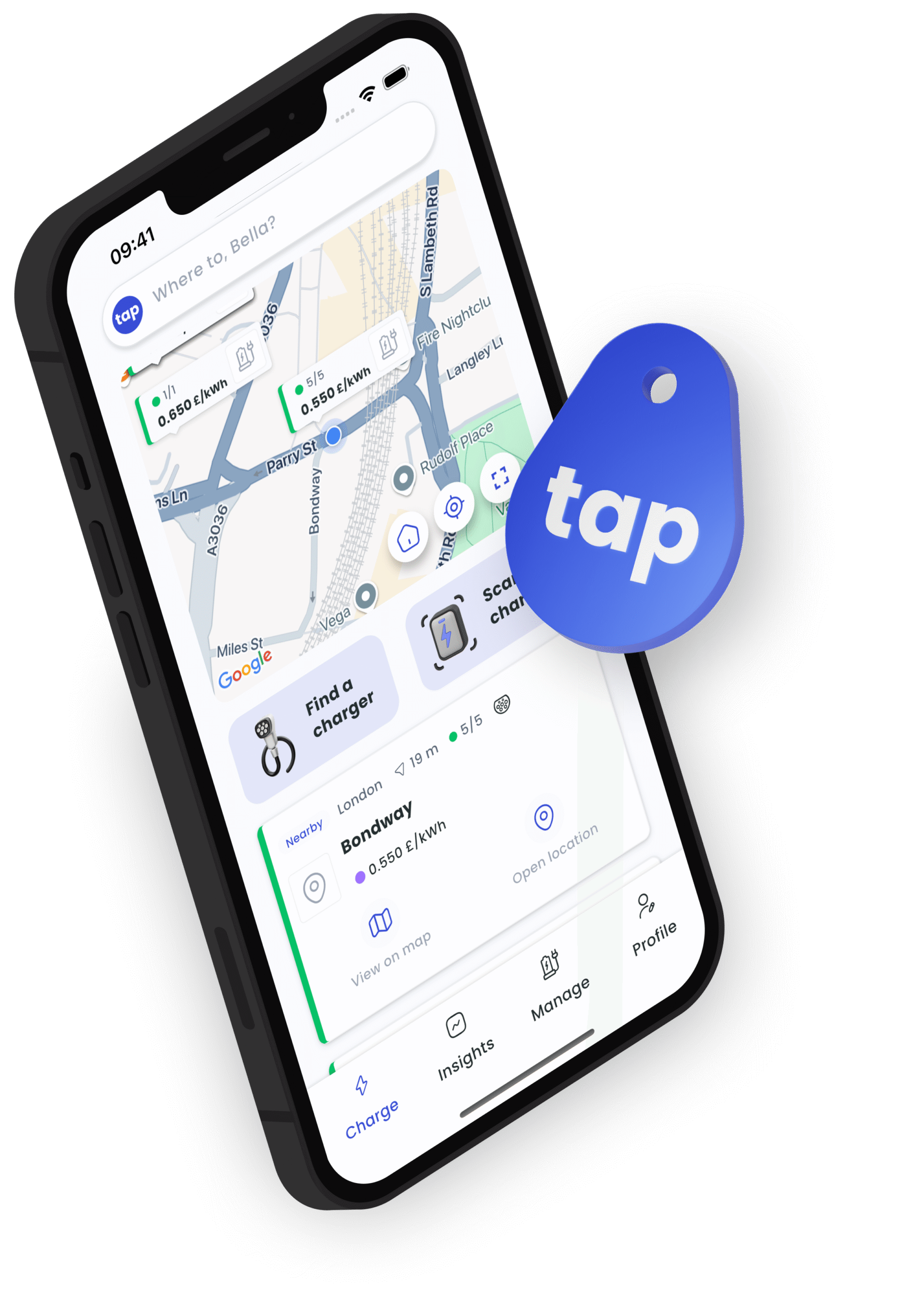 Access our massive public charging (roaming) network via the Tap app or RFID Tapkey charge card
