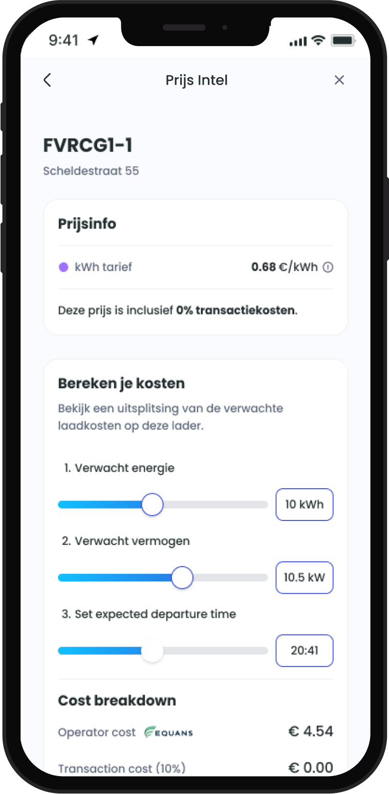 Op onze kaart zie je de complete prijzen per laadpaal, zodat je altijd weet waarvoor je betaalt.