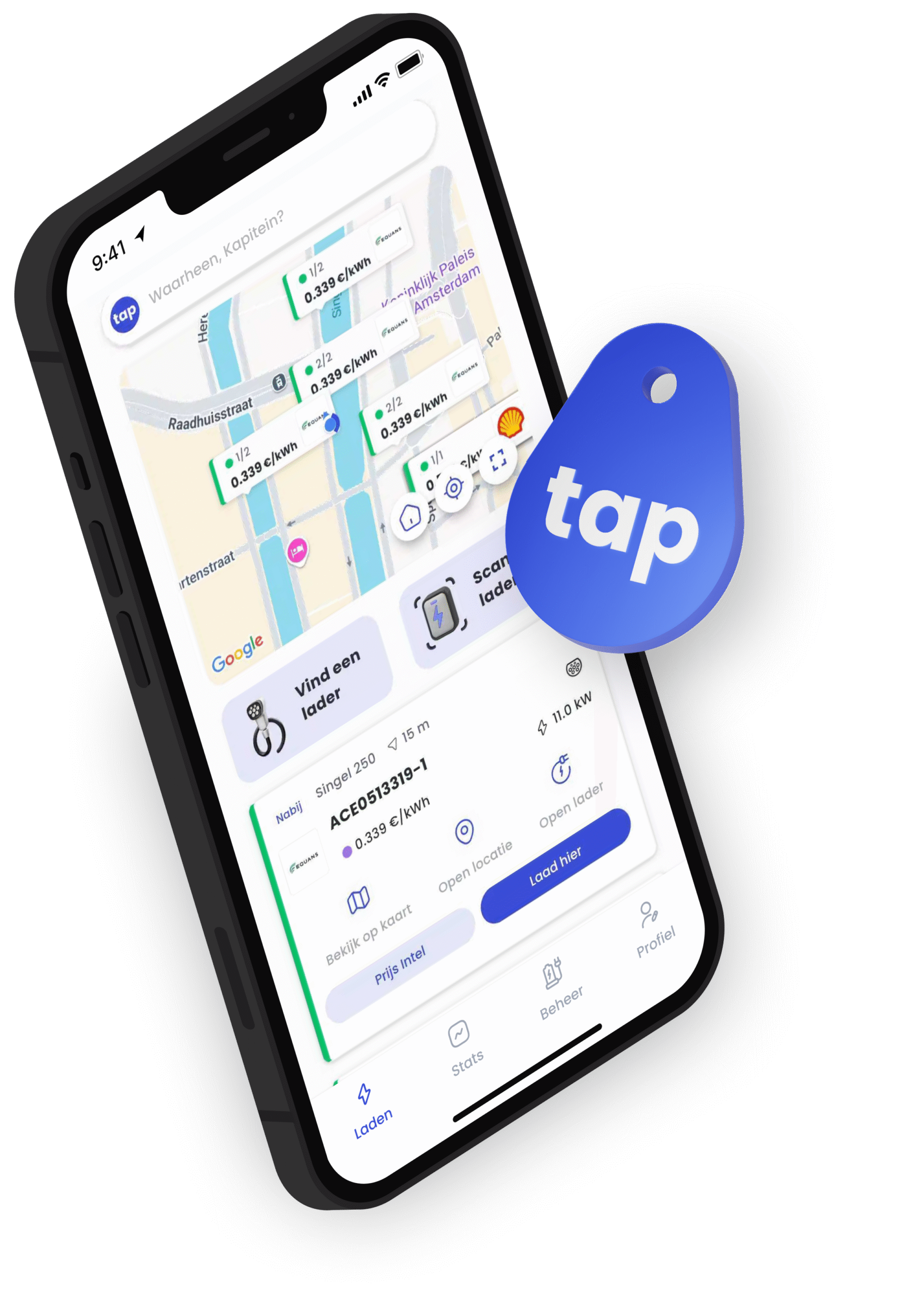 Maak gebruik van een uitgebreid openbaar laadnetwerk met de Tap laadapp of RFID Tapkey laadpas